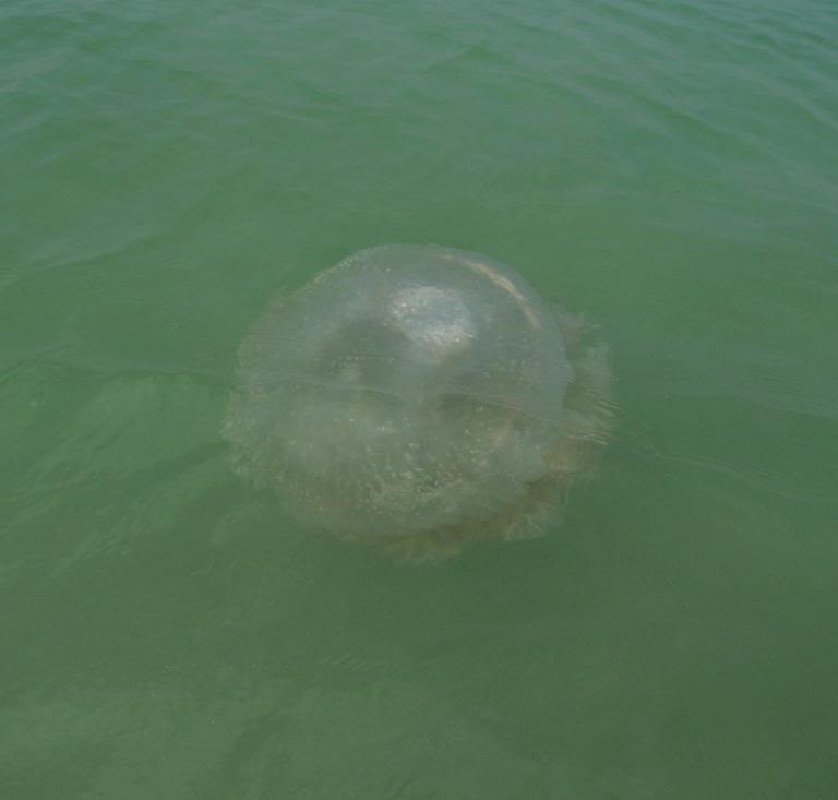 На пляже в полдень людно. Но иногда тоже интересно. В один из дней в воде вдруг появились здоровенные медузы.