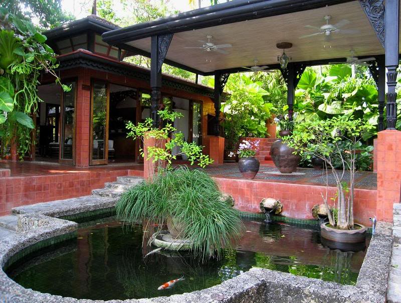 Внутри не было никого из посетителей, играла задумчивая восточная музыка, на разных уровнях стояли вазы с цветами, в прудике с лотусами плавали крупные разноцветные карпы.