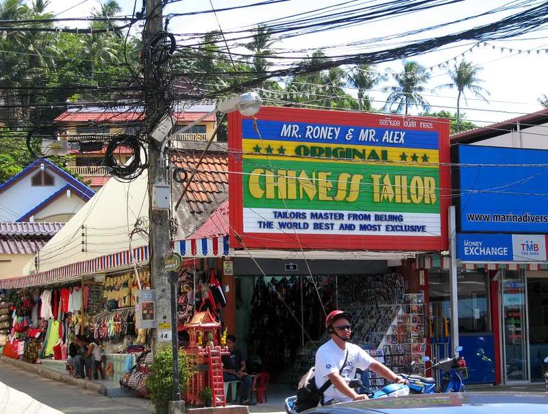 Скандинавов тоже немало: мартовские холод и слякоть гонят северные народы на юг, чтоб хоть немного согреться. Американцев здесь в общем-то не много. Правда, я обнаружил вот такую занятную лавку: два разудалых нью-йоркских еврея Мистер Рони и Мистер Алекс решили разбогатеть здесь на пошиве одежды, потому что кто может устоять перед Мастерами из Пекина, Лучшими и Самыми Эксклюзивными в Мире! (Обратите внимание на правописание Chinese – Chiness!)
