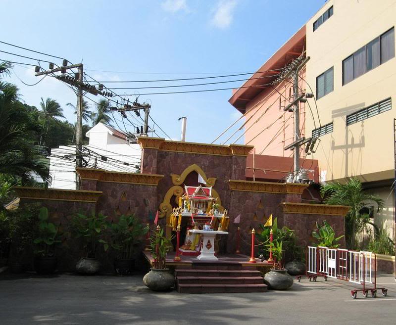 Как и повсюду в Таиланде, святыни соседствуют на острове с признаками прогресса, и моя камера тянется запечатлеть эти восхитительные уродства