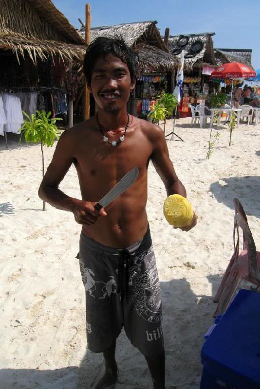 венников в Таиланде невозможно объяснить одной отдельно взятой труппой. На пляже в Kata разговор принято вести по-русски! Как это я так подгадал? Судьба-индейка... Значительную часть российской толпы составляли громкие товарищи в ти-шортках с надписями вроде "No money, no honey" или "Мою жену зовут Вагина Ивановна". Впрочем попадались не одни жлобы. Рядом с нами в столовой и на пляже располагалась интеллигентная пара москвичей. Молодая семья – муж и жена из Рязани – очень здорово управлялись с двумя малыми детьми, а две симпатичные, жутко белокожие девчушки-лесбияночки из Питера оживляли картину и почти совсем примирили меня с покинутым Сказочным Королевством.
