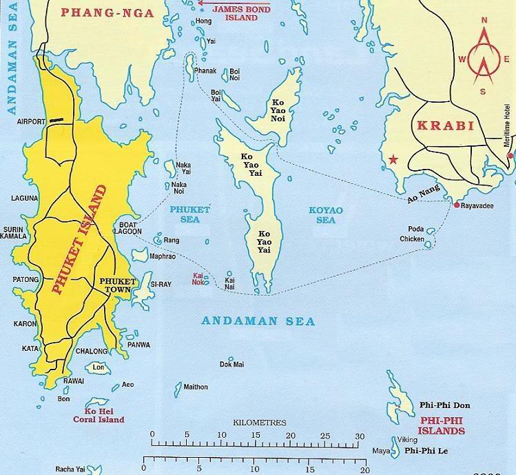 Phuket – самый крупный из таиландских островов – расположен в восьмидесяти минутах лёта от Бангкока. Северная его оконечность настолько близка к материку, что соединена с ним Сарацинским Мостом (это я ради удобства произношения называю его Сарацинским, а вообще-то официально – Sarasin Bridge). Фукет считатся раем для жаждущих пляжного отдыха. Температура здесь никогда не падает ниже 32 по Цельсию и не подымается выше 34. На острове всего два времени года: дождливый – с мая по октябрь (сентябрь – самый дождливый месяц) и жаркий – с ноября по апрель.