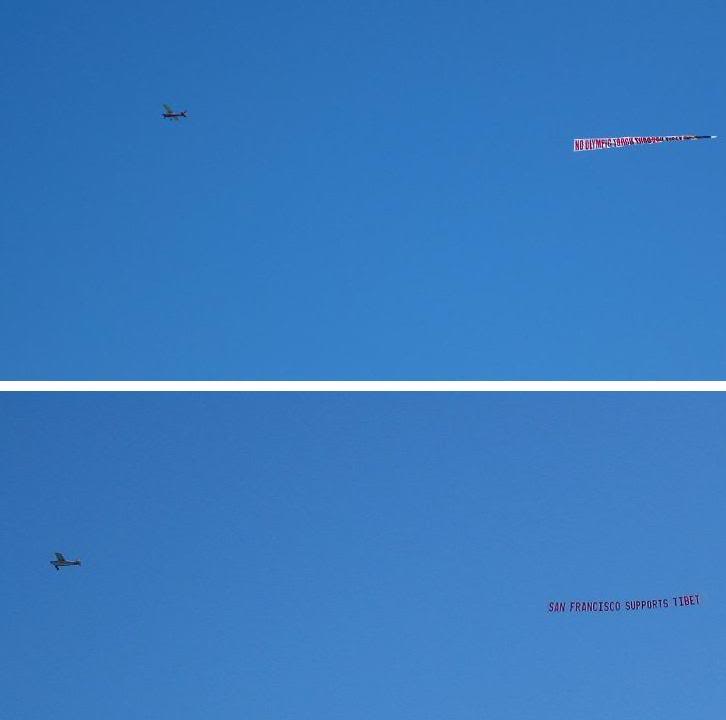 А в небе летали два самолётика, возили над нами плакаты с надписями о том, что Сан-Франциско твёрдо стоит на стороне Тибета