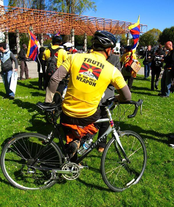 о маршрута олимпийского огня автомобильное движение было перекрыто, мне показалось разумным подготовить группу велопротеста - мобильный отряд, который мог бы быстро добраться куда надо в случае, если бы организаторы шоу решили изменить маршрут. Вообще, надо сказать, демонстрация была разумно продумана.