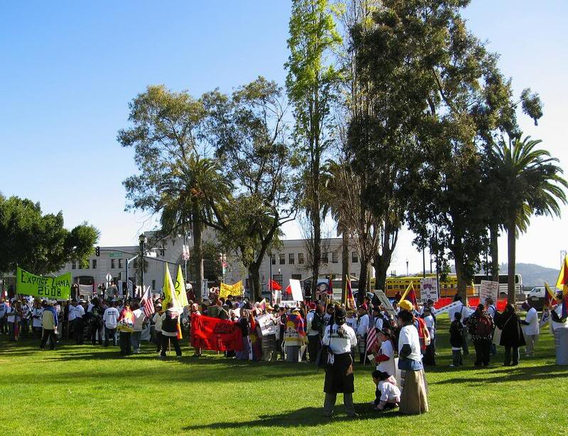 Выйдя из автобуса, увидел, как к Justin Herman Plaza стекались наши люди. Лица у многих были разрисованы, девушки и парни несли флаги независимого Тибета, плакаты.