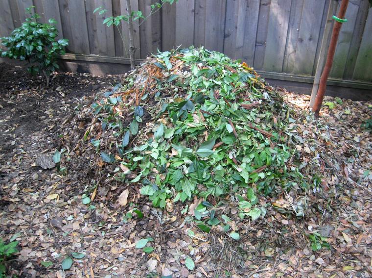ых удобрений хорошо использовать компост. Для его приготовления не нужны никакие особые устройства. Сваливайте все пищевые отходы и измельчённую зелень с деревьев и кустов в углу вашего надела, и в течение нескольких месяцев вы получите богатый перегной, с замечательными жирными червями, готовый для ваших грядок. Вот так выглядит компостная куча у нас в саду, у забора, бесплатно обеспечивающая сад всеми необходимыми органическими удобрениями: