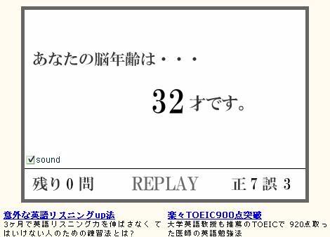 Эта нехитрая игра якобы измеряет скорость реакции и способность к ситуационной оценке. На основании ваших действий компьютер вычисляет, какому возрасту соответствует ваша реакция. После четырёх попыток мой лучший результат был - 32 года. Я удовлетворился (вот бы и остальные мои органы этому возрасту соответствовал