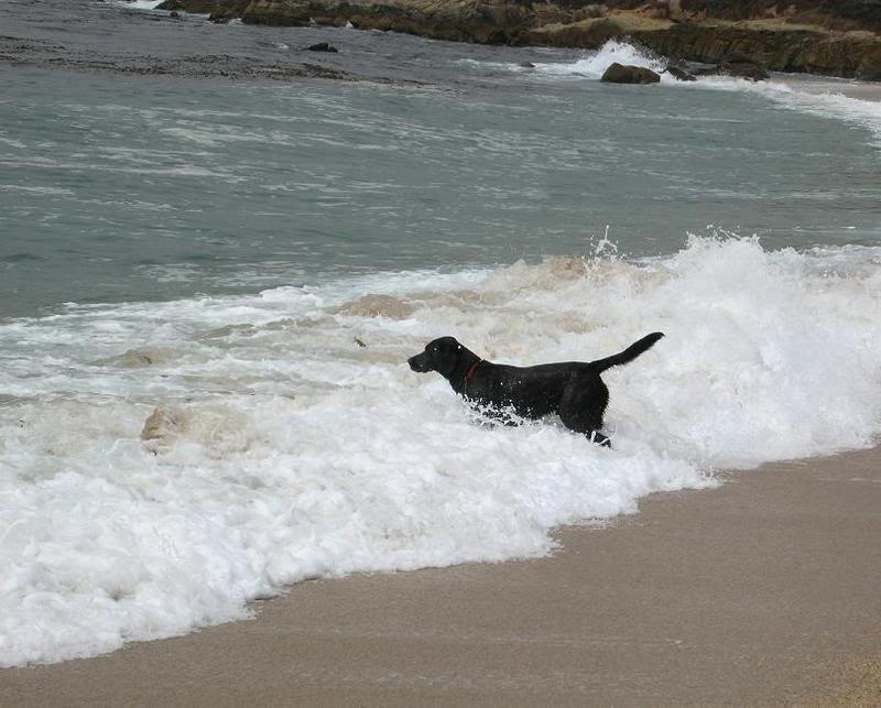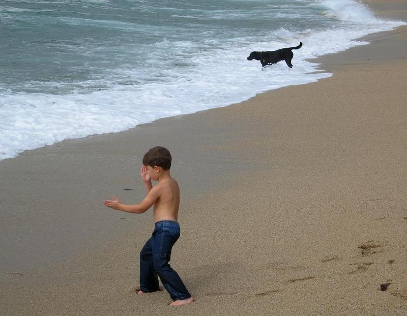 Вот мальчик и собака отрабатывают технику боя с океаном