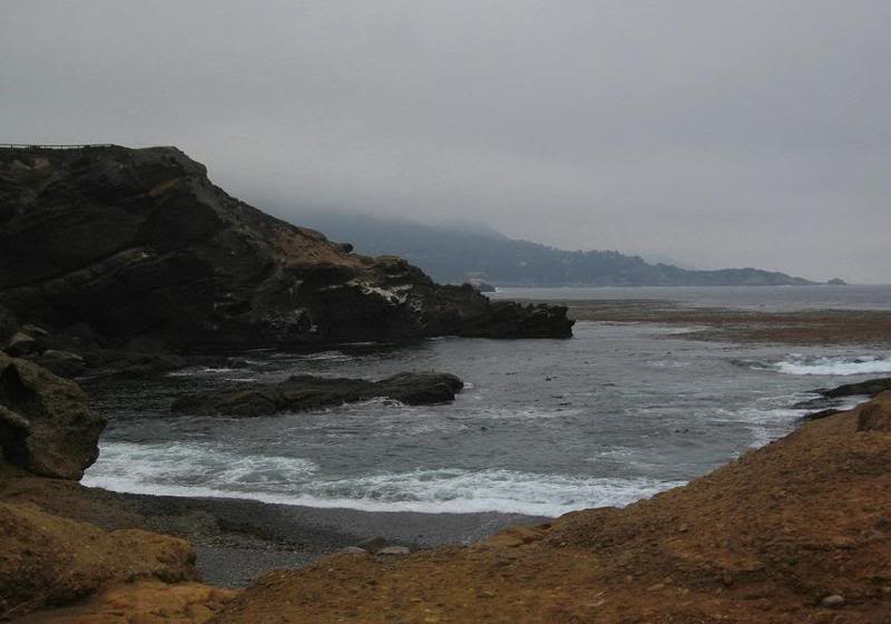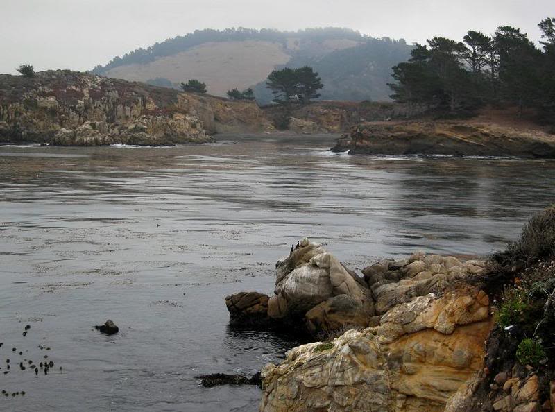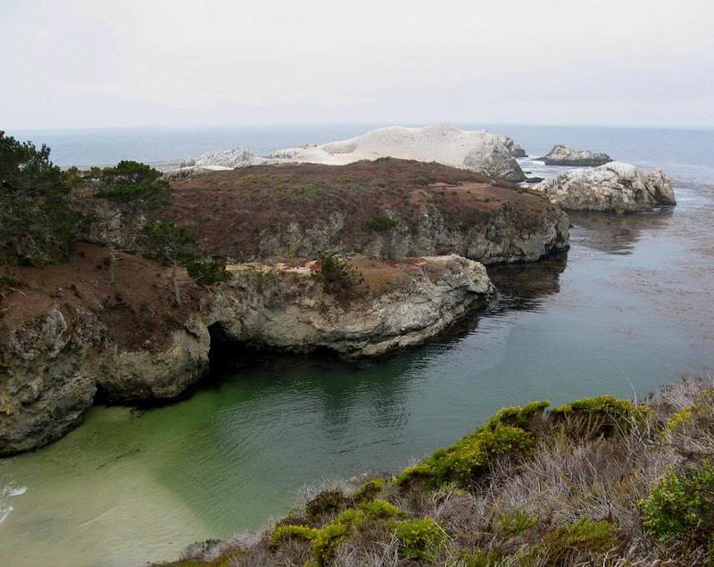 Теперь о самом побережье (можно проследить по карте места, где сделаны фотографии). Вот так выглядит Sea Lion Cove – Бухта Морских Львов – в туманный день.