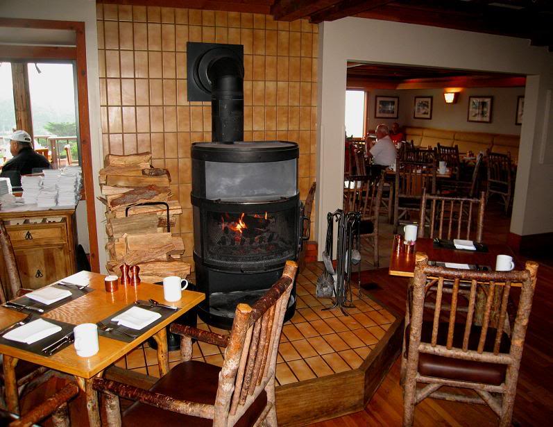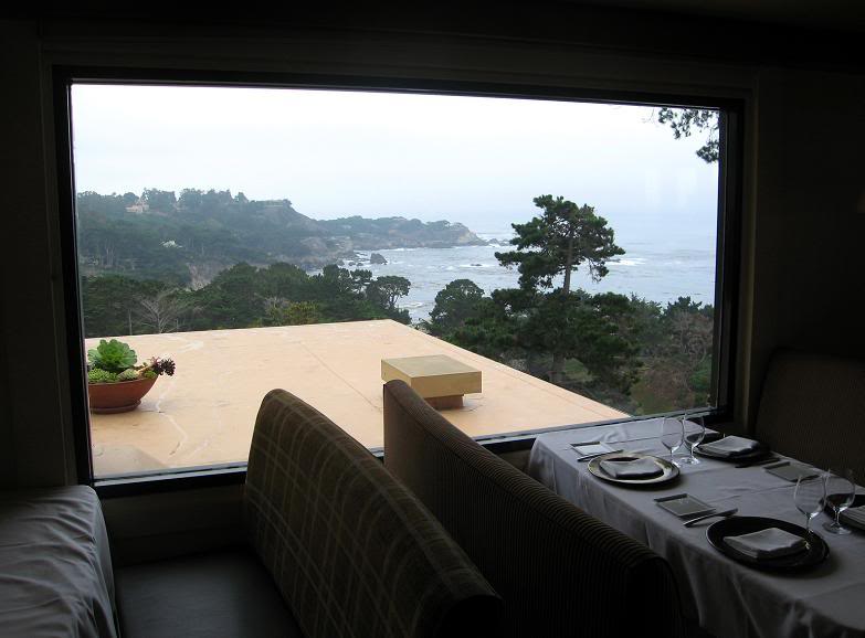 Вся передняя стена огромного холла застеклена и открывает вид на побережье Point Lobos. народу было немного, в большом камине весело трещали дрова, и можно было не торопясь насладиться отличным калифорнийским Sirah, который они принесли нам в гигантских бокалах (я вина из таких больших бокалов никогда не пил...)