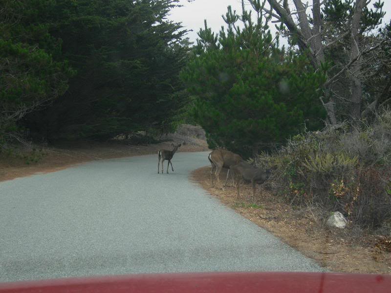 sea otters. По дороге нам попалось семейство оленей, питавшееся какими-то кустиками и не обращавшими никакого внимания на наш автомобиль. Пришлось остановиться, сфотографирова