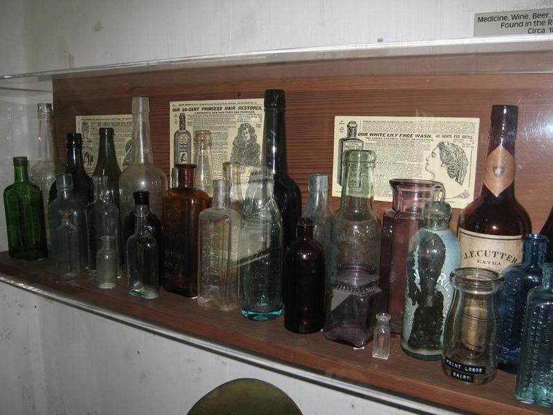 Дальше по полкам – стеклотара 1890х годов и реклама косметических достижений конца 90х годов 19-го века: "Our Famous Parisian Depilatory", "Our 60-cent Princess Hair Restorer" и "Our White Lily Face Wash"! Уже тогда женщины умели погулять по буфету...