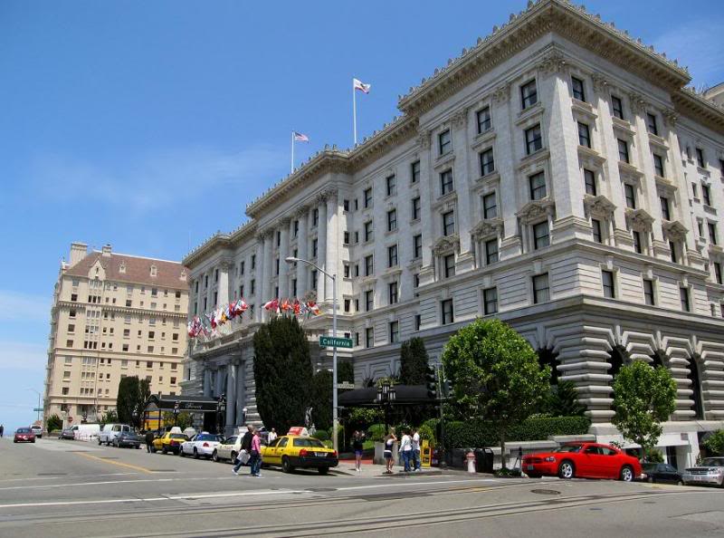 Построенный в 1906 году и переживший знаменитое сан-францисское землетрясение, Fairmont Hotel известен всему миру во-первых тем, что именно здесь после Второй Мировой войны собрались представители разных наций для организации ООН. Во-вторых, в Круглом Зале отеля открылся первый в Сан-Франциско бар после отмены сухого закона. В-третьих (и это несравненно дороже для меня лично) в Fairmont Hotel'e есть знаменитый Венецианский Зал, в котором выступали Нат "Кинг" Коул, Марлен Дитрих, Джеймс Браун и Элла Фитцджералд. Здесь Tony Bennett впервые исполнил "I left my heart in San Francisco". Может когда-нибудь соберусь с духом и расскажу вам поподробнее историю этого отеля. На фото внизу - вход в Fairmont Hotel.