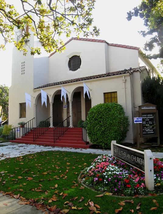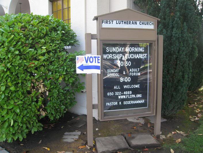 Избирательный участок в Первой Лютеранской Церкви в Пало Алто, Калифорния: