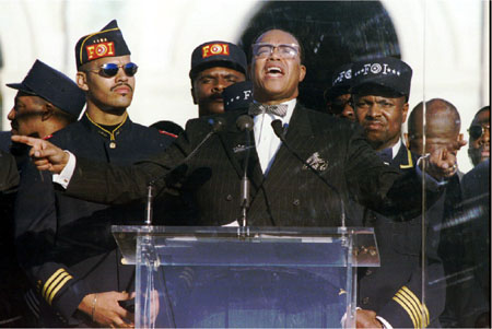 Кто такой Luis Farrakhan? Поддержавший кандидатуру Обамы основатель расистской Нации Ислама. На фотографии ниже он снят произносящим юдофобскую речь перед бандой своих сторонников: