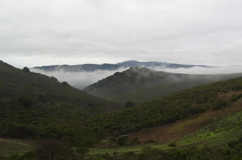 Туман, ползущий с океана в долины Marin Heights