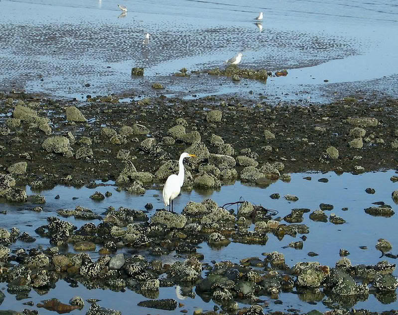 Корте-Мадера. Белая цапля зимует на сан-францисском заливе.