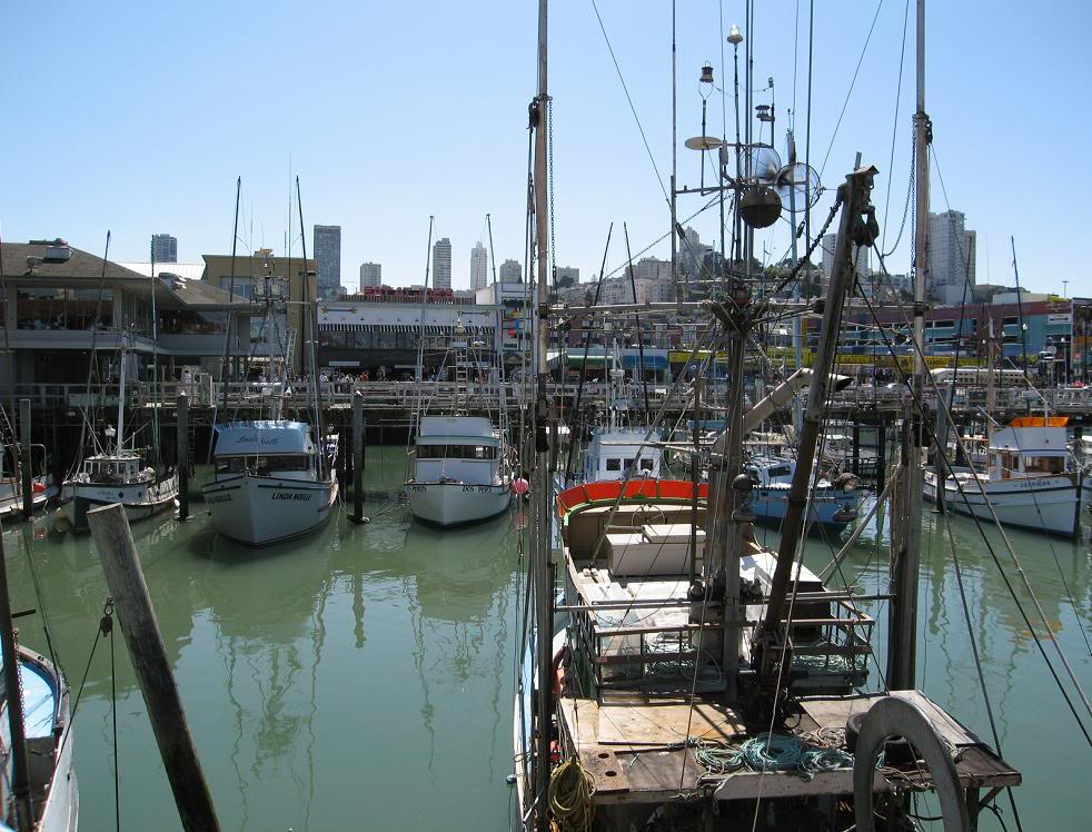 А это лодки на Fisherman's Wharf (в Рыбачьей Гавани). В этом году рыбакам тоже не сладко: второй сезон подряд запрещён отлов лососёвых из-за снижения рыбьего поголовья у берегов Калифорнии.