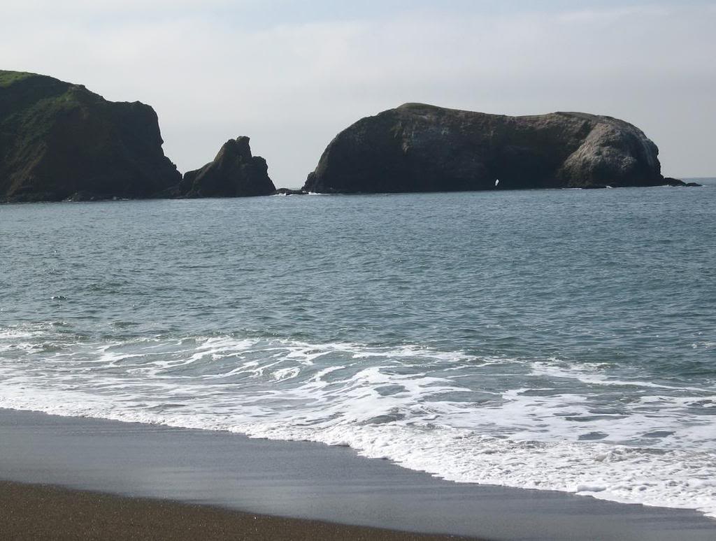 На океанском побережье вода, слава Богу, не убывает. На снимках внизу Rodeo Lagoon и скала "Слоник" в Rodeo Cove