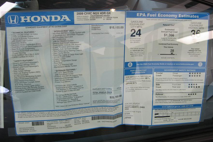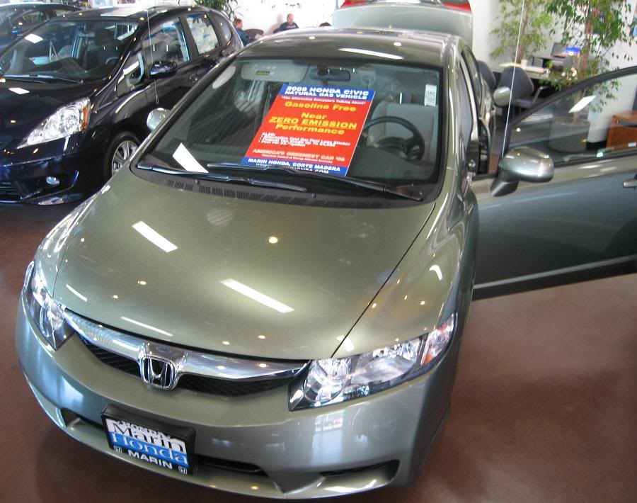 В Корте-Мадере, у автодилеров Хонды всё ещё можно встретить живых людей и даже обслуживают автомобили. Моё внимание привлекла новая модель Хонды Civic NGV - с двигателем, работающем на газе (natural gas).