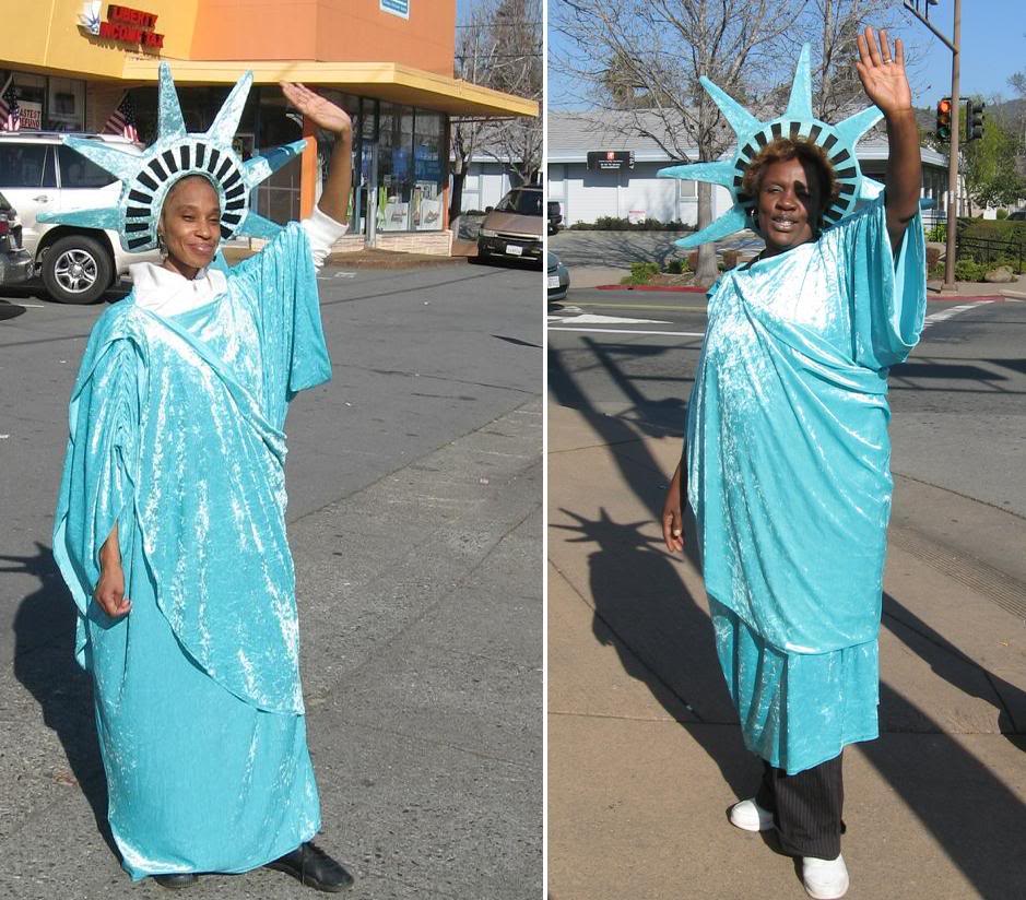 А здесь сняты две Lady Liberties, встречающие автомобилистов в Марин. Познакомился с обеими: хорошо, говорят, хоть такая работа есть - рекламировать Liberty Income Tax offices...