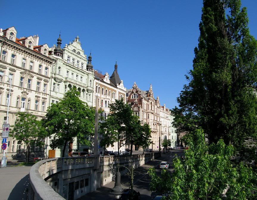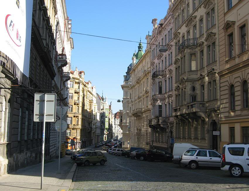 Наш отель расположен в районе Праги, называемом Нове Место, хотя это Место совсем не такое уж молодое на самом деле (к тому же самое крупное из исторических районов города). ‘Новым’ его назвали потому, что этот район был заложен в 14-ом веке императором Карлом IV в качестве продолжения старого города (Старе Место). Нове Место расползлось во всех направлениях от кольца бульваров (Na prikope, Narodni trida), сменивших старинные, давно разрушенные крепостные стены и фортификационн ые сооружения. Вот одна из улиц Нового Города: