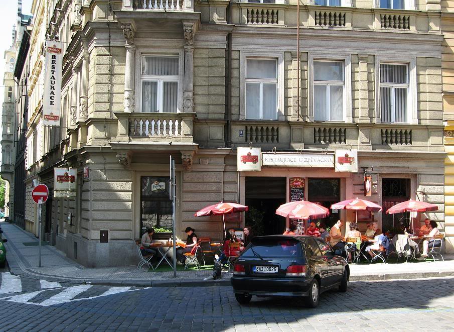 А это новоместский ресторанчик неподалеку от нашего отеля c симпатичным названием Restorace u Zpevacku:
