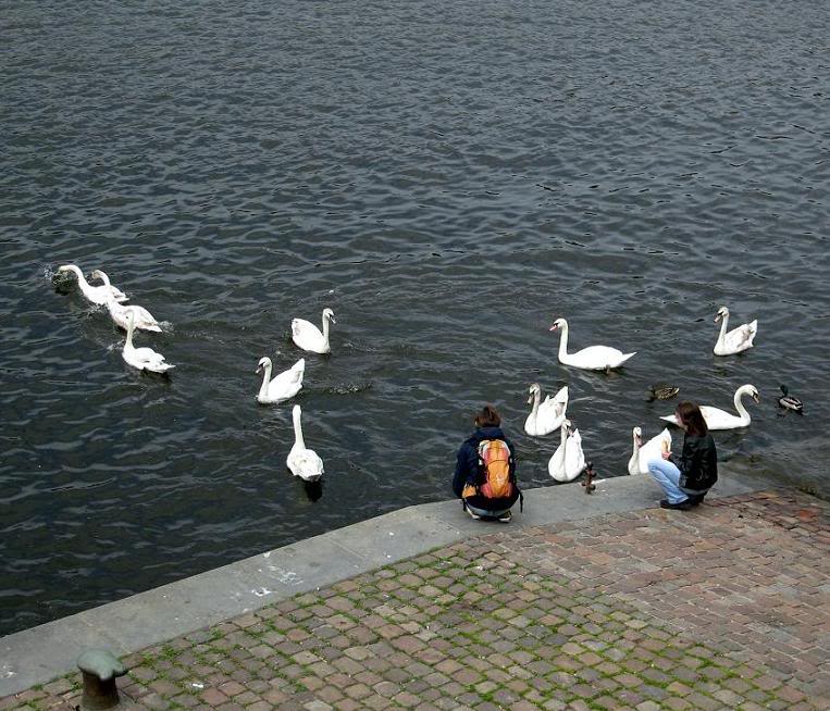 С набережных перекинуты изящные мосты на острова, там можно гулять в ухоженных парках или сесть на скамейку и смотреть на белых лебедей, тоже выбравших Влтаву в качестве своего дома.