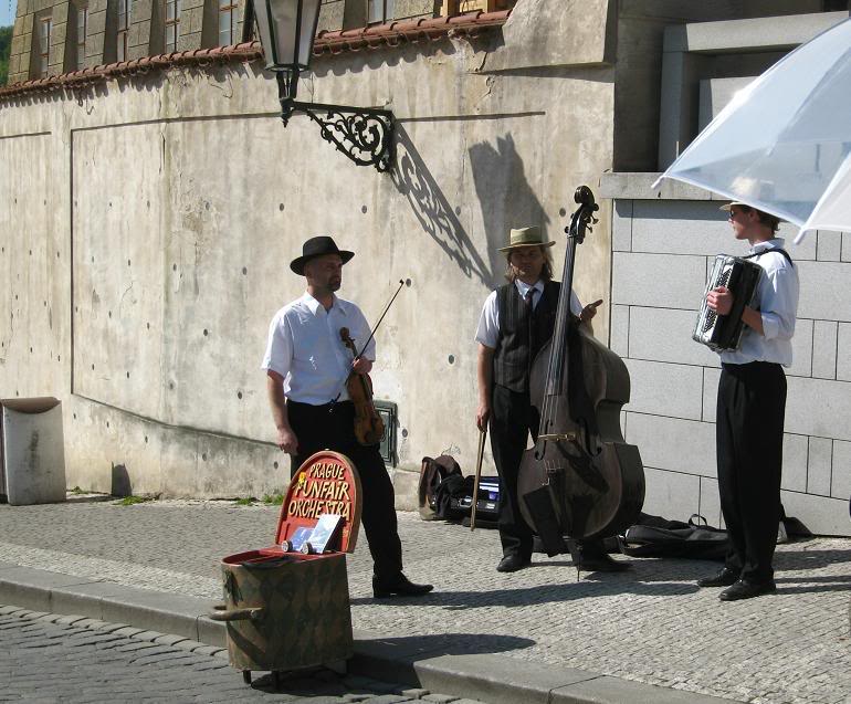 ... трио музыкантов возле Пражского Замка на Градчанах: