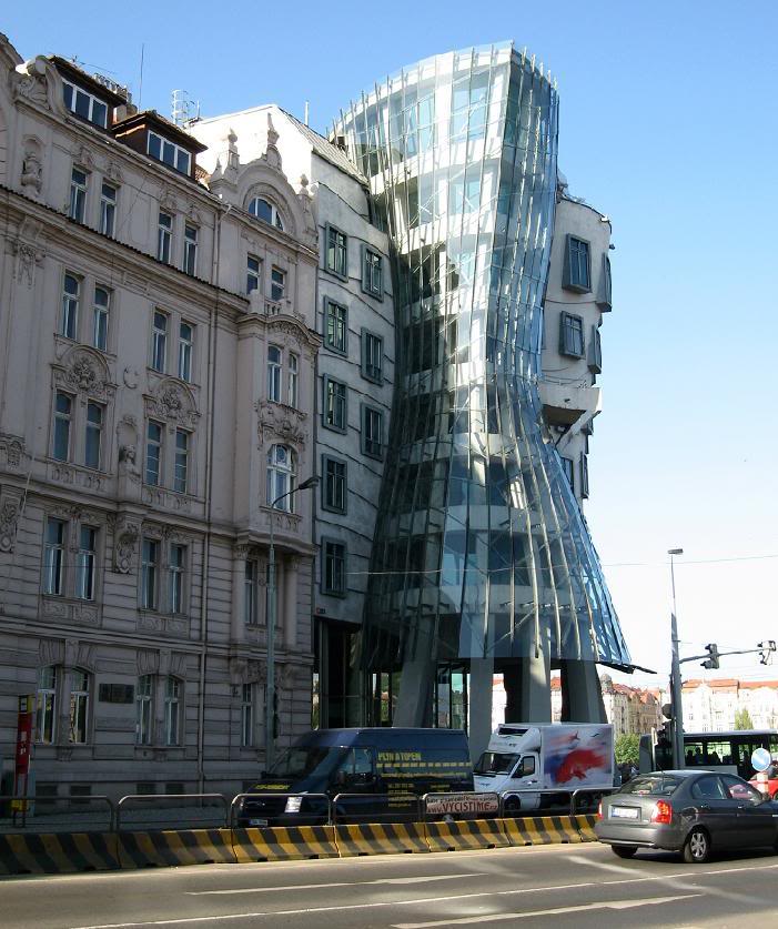 Гуляя вдоль Влтавы, трудно не заметить необычное здание, которое, наверное, гораздо лучше чувствовало бы себя в Барселоне, чем в Праге, – Танцующий Дом (его также называют “Fred and Ginger” – в честь знаменитой американской танцевальной пары, Фреда Эстера и Джинджер Роджерс). Танцующий Дом был построен в 1996 году. Весёленький такой получился постмодернизм, пражане им очень гордятся. Рекомендую приезжим не отказать себе в удовольствии съесть ланч в ресторане на крыше Танцующего Дома.