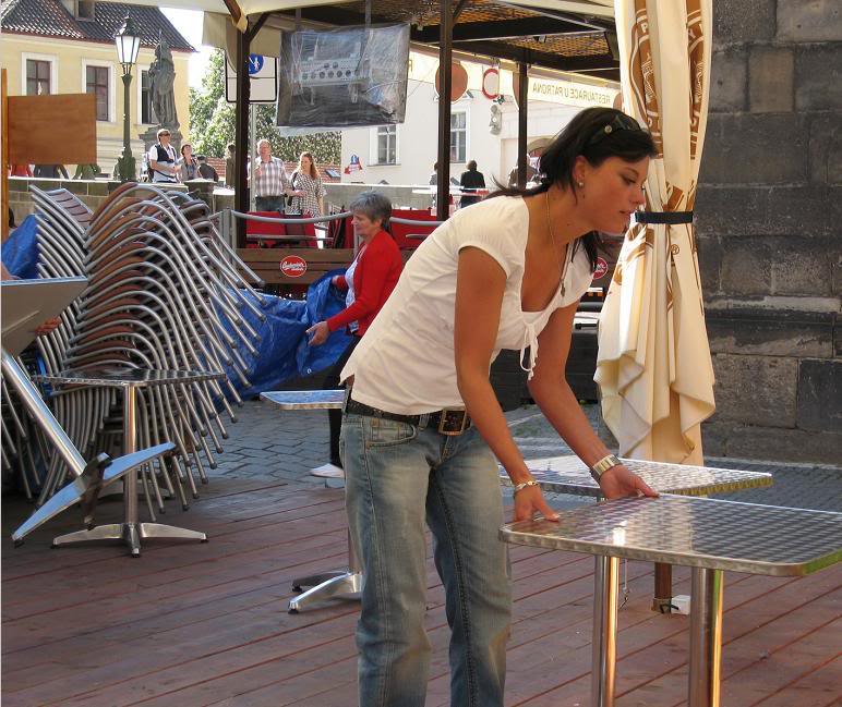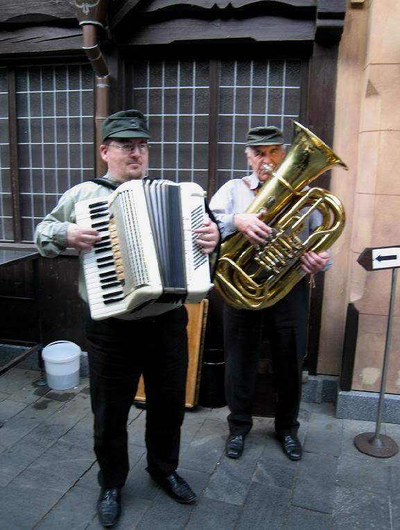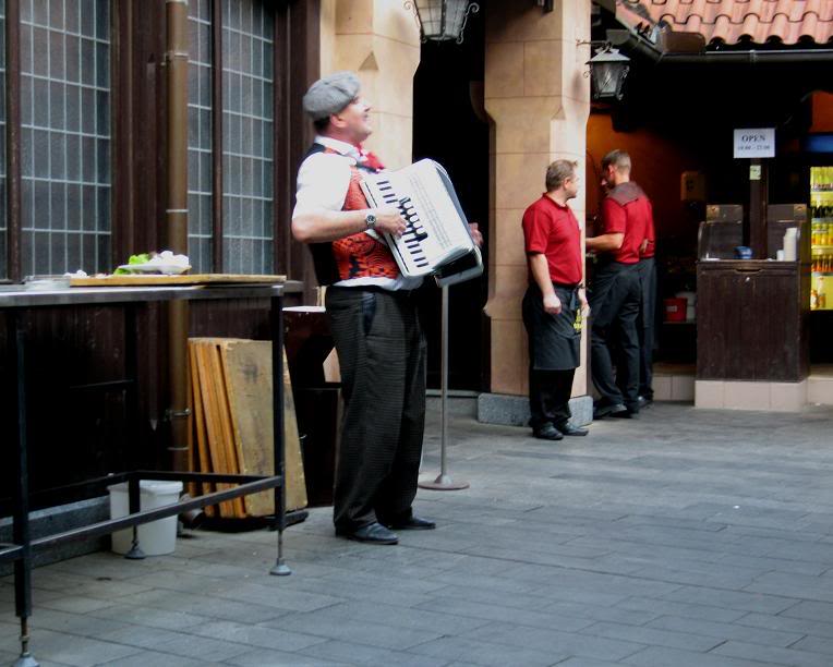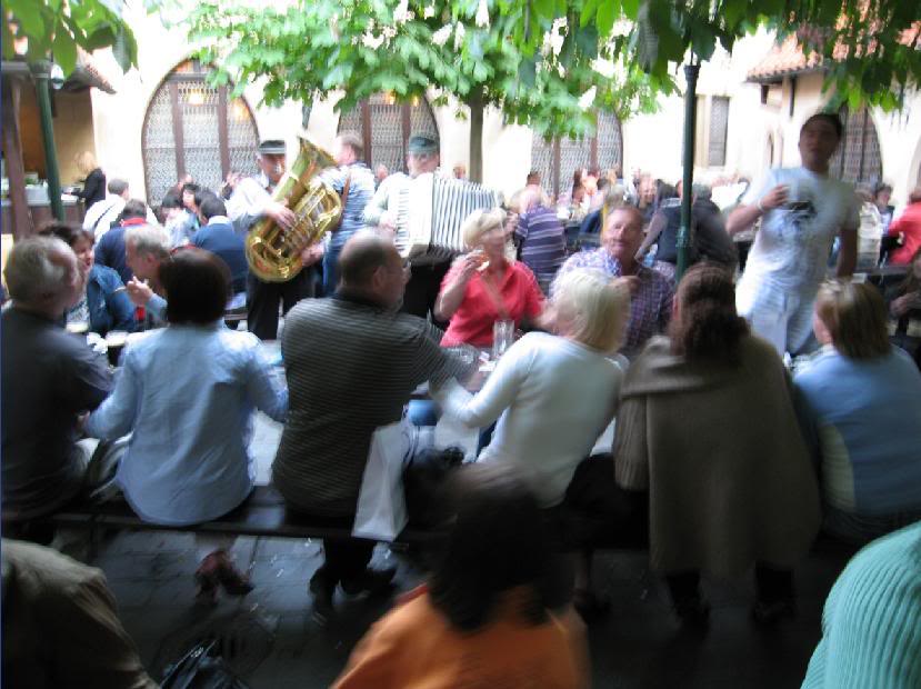 Здесь не встретишь русских (мне во всяком случае не повезло), зато к Флеку валом валят привлечённые дешёвым хмельным пивом немцы. Приняв на плечо достаточное количество напитка, они зазывают к своим столам музыкантов и начинают горланить немецкие песни, дружно раскачиваясь из стороны в сторону и выплёскивая на столы пивную пену. Я попытался сфотографирова