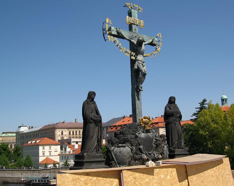 л только одну из скульптурных групп на Карлувом мосту – распятие с двумя женскими фигурами по бокам.