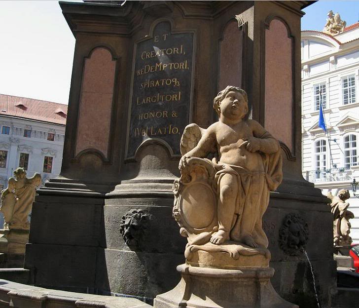 Перейдя через Карлув мост на левый берег Влтавы, попадаешь в Малостранске Наместе. На этой площади стоит католический храм Св. Николая – роскошное сооружение, построенное в реформистской Праге явно в расчёте поразить богатством воображение потенциальной паствы. Перед входом в храм расположен обелиск, основание коего украшают четыре ангела. Глядя на эти скульптуры, трудно отделаться от мысли, что давнее пристрастие католических священников к прислуживающим у алтаря мальчикам объясняется не только обетом безбрачия, но уходит корнями в искусство средневековья – трудно бедняге-попу удержаться и не огладить по ходу дела пухленькую попку эдакого ангелочка!...