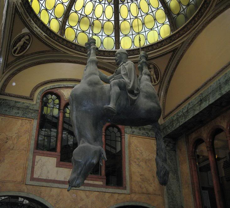 А этот мужественный всадник украшает зал шопинг-центра в районе Венцеславской Площади: