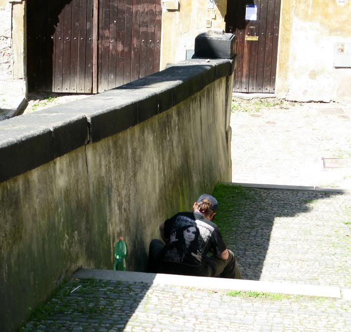 ... алкаш, устроившийся в тихом уголке, чтобы без помех выпить свой ланч. Незадолго до этого я видел, каким хитроумным способом он собирал мёд с туристов: парень не поленился стать на колени, распростёрши тело и положив голову ниц на скрещённые руки. Эта поза, выражение предельного ничтожества, submission, должна вызывать такой ужас у западного человека, что он рад кинуть парню монету покрупнее, пусть только, ради Бога, поскорее встанет с мостовой! Я хотел сфотографирова