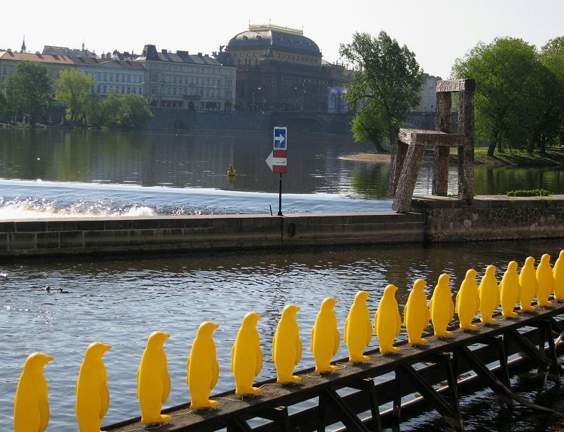 Публика по большей части не обращает внимания на пингвинов: все деловито фотографируют скульптурные группы на Карлувом Мосту. Вообще на мосту ошиваются толпы народу, а поскольку половина моста перекрыта из-за ремонта, постарайтесь не повторять моей ошибки и не попадайте туда в час пик, когда народные массы пытаются пешком перебраться с одного берега на другой. Я сфотографирова