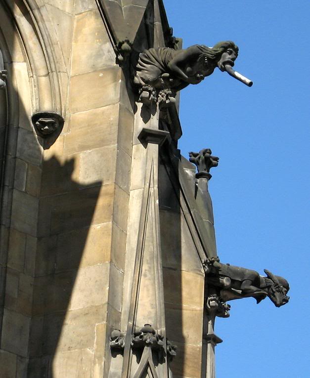 Интересно, что все фигуры горгулей Святого Витуса – разные. Среди них есть совершенно комичные персонажи, как вот, к примеру, эта парочка: