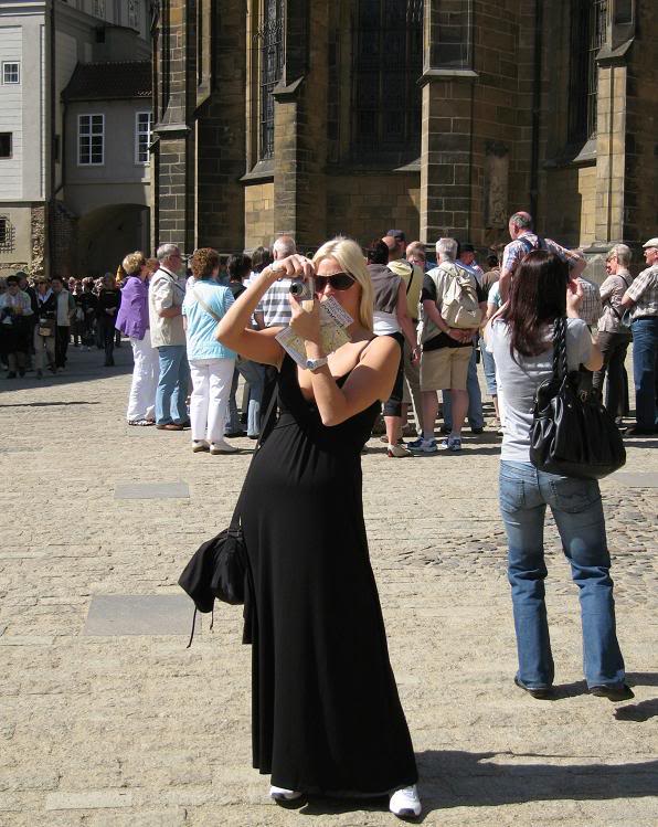 Потом я стал снимать туристов. Ну, ладно, уточним: туристок. Делать это во дворе Пражского Замка проще простого: девушки сами принимают необходимые позы – позируют для своих спутников/спутниц, тут ты их и стреляй! It’s like shooting fish in a barrel. Не могу не поделиться своим уловом с мужской частью френдленты