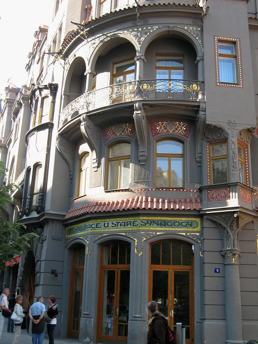 Потом замечаешь на доме с причудливым орнаментом выложенную мозаикой вывеску ресторана Restorace u Stare Synagogy, и понимаешь, что попал в нужный тебе район города.