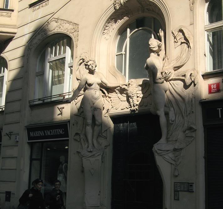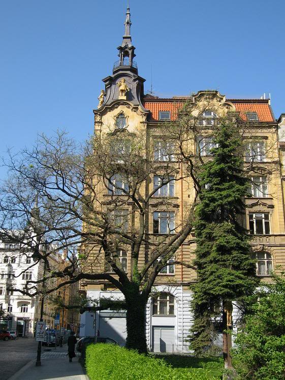 В других районах Праги мне тоже попалось несколько знаков еврейского присутствия. Вот фасад одного из зданий в Малой Стране:
