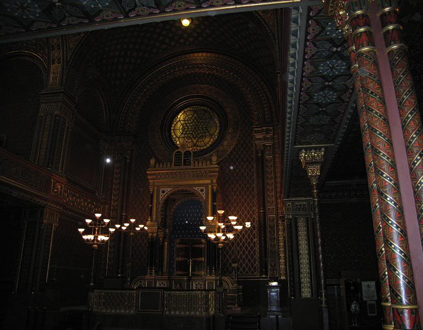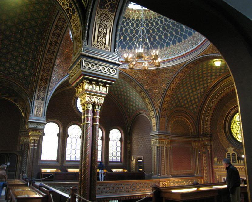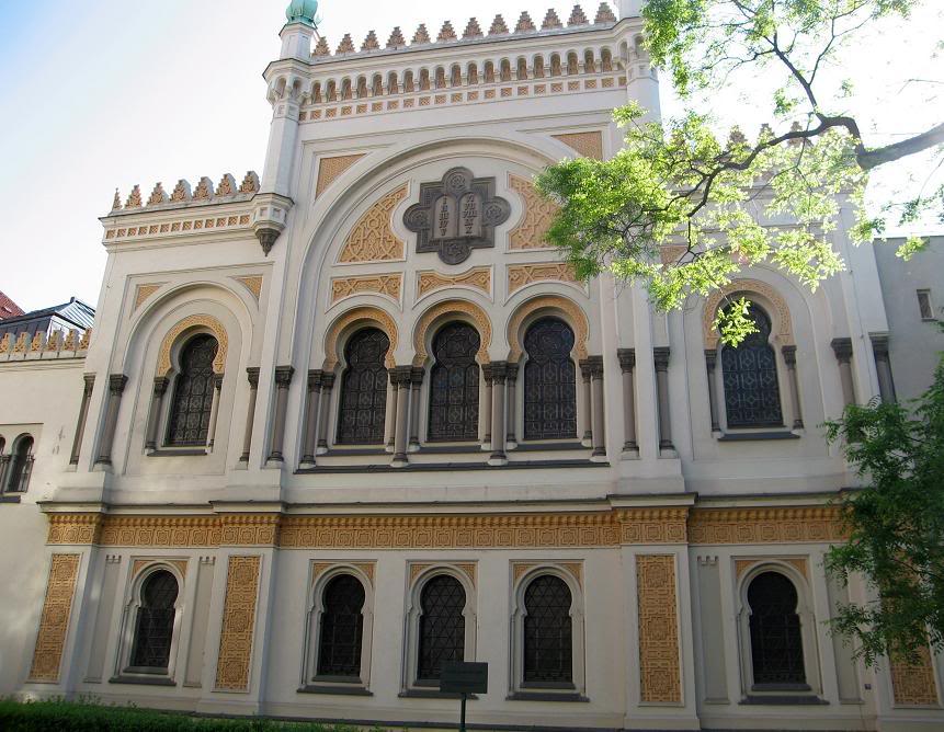 Испанская синагога, построенная в 1868 году, символизирует престиж и благосостояние еврейской общины 19-го века. Она построена в модном тогда мавританском стиле и напоминает дворцы Альгамбры. Так выглядит фасад Испанской Синагоги: