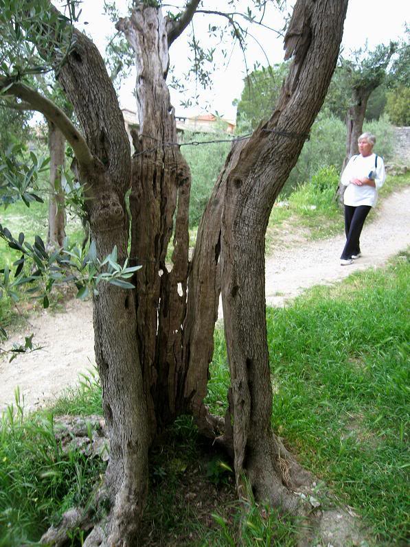 В этом месте путешествия жена заявила, что уже достаточно промокла и хочет ехать домой. Так мы и сделали, попрощавшись предварительно с крепостными башнями и со старыми оливковыми деревьями, одно из которых поразило меня почти портретным сходством со мной самим: древесина ствола была внутри совершенно изъедена, но дерево держалось чудом на остатках коры, стянутых вместе проволокой, – продолжая жить и зеленеть...