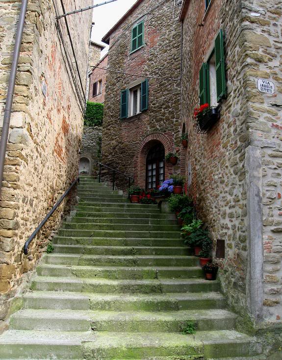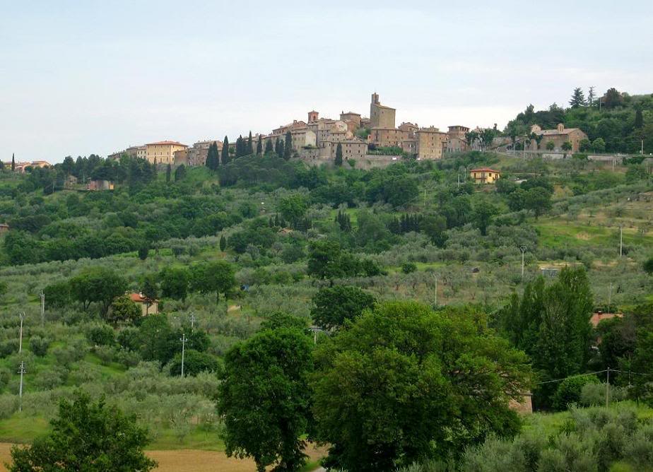 GPS не рассказывала, что и как нам нужно делать, мы ничтоже сумняшеся вырубили её насовсем. В результате, вместо того, чтобы ехать к себе домой на восток, в Пасиньяно, мы повернули на юг. Незнакомая дорога карабкалась всё выше и выше, по каким-то неведомым серпантинам, и не было места, где можно было бы развернуться, чтобы ехать назад. Наконец мы выбрались очень высоко над окружающей долиной, и перед нами открылся неизвестный город на вершине горы...
