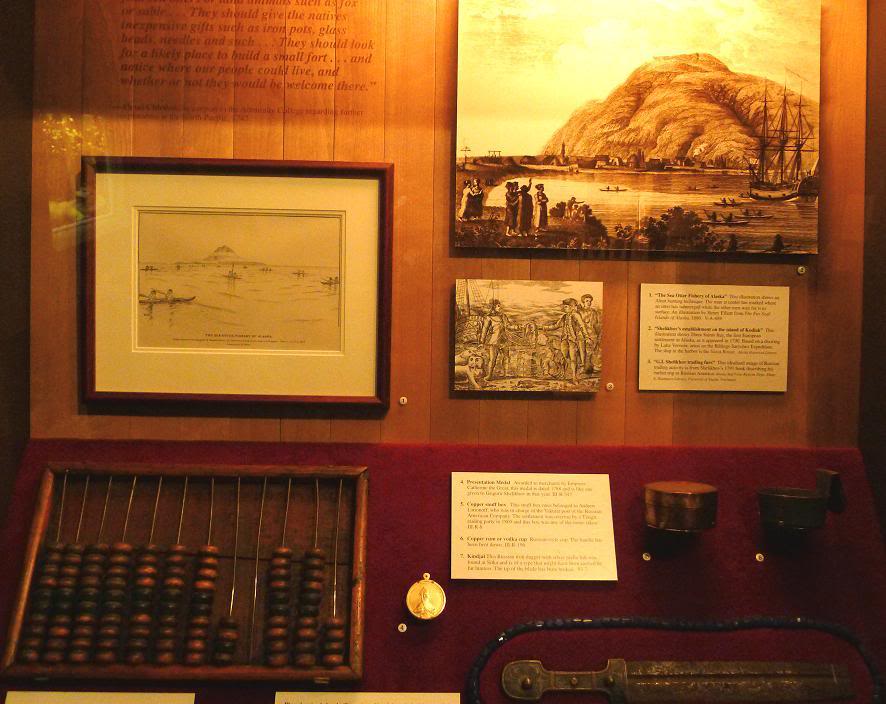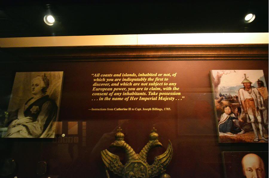 Экспозиция начинается с читаты из письма Екатерины Второй капитану Биллингсу от 1785 года: «Все побережья и все острова, населённые или ненаселённые, которые тебе безоговорочно первому приведётся открыть и которые не принадлежат никакой из европейских держав, ты должен объявить, с согласия обитателей, Нашей собственностью