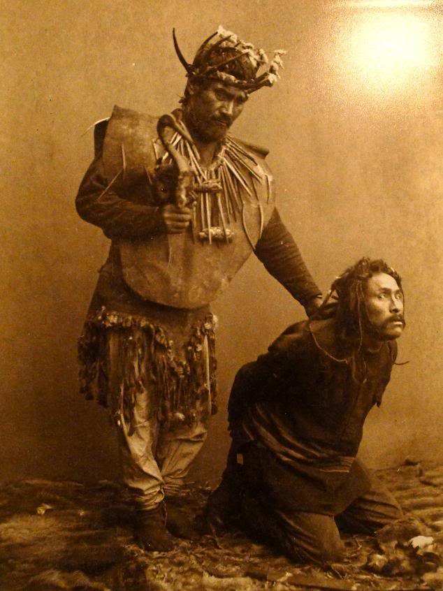 Шаман, допрашивающий индейца, подозреваемого в колдовстве (несчастный затравленно смотрит на фотографа, наверняка думая: вот где настоящий колдун, а этот мудак меня допрашивает!...)