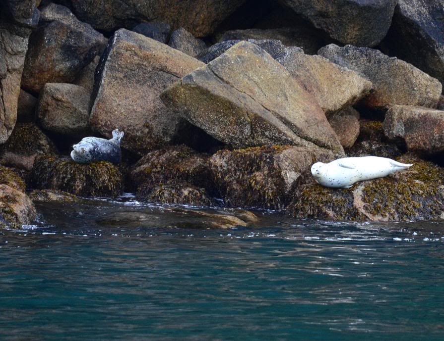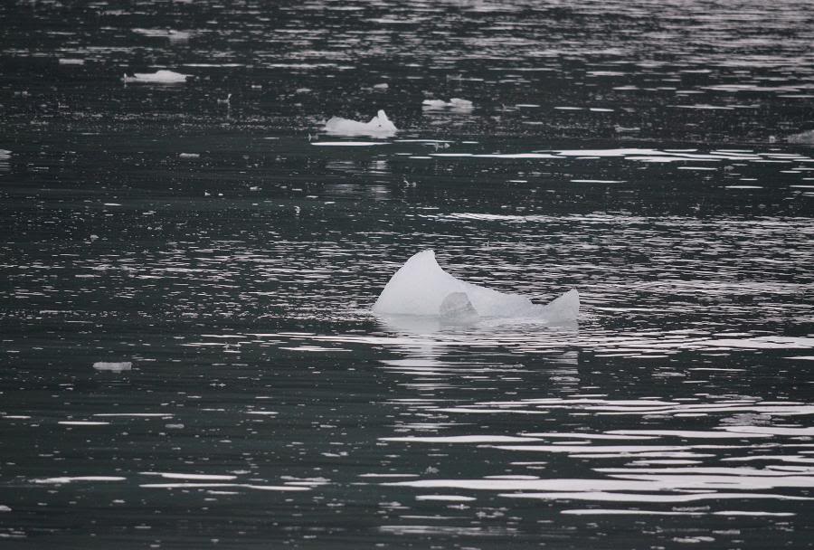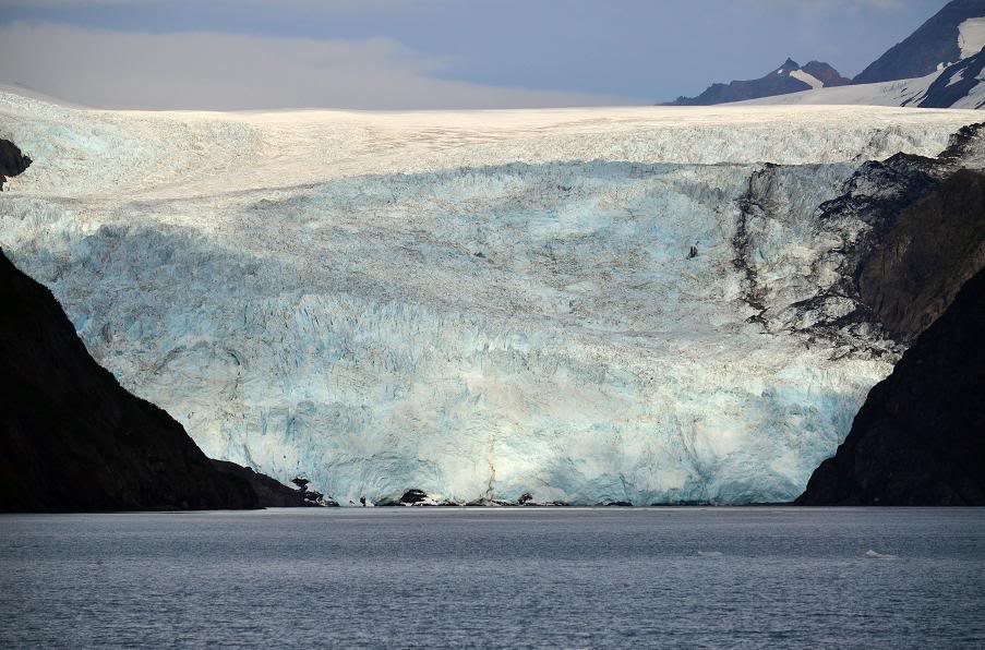 Самым большим из ледников, виденных нами в этой поездке, был ледник, спускающийся к океану в южном рукаве фиорда Aialik Bay. По мере приближения к леднику катеру приходилось лавировать между всё возраставшим количеством льдин. Вода за бортом казалась чёрной по контрасту с плавучими льдинами.