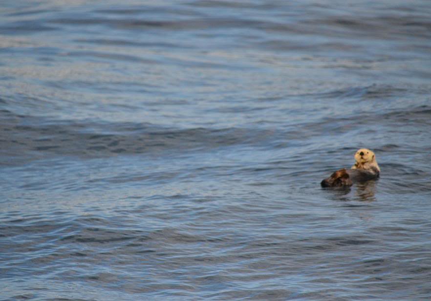 Воды залива населяет множество морских выдр (не знаю, правильно ли так называть Sea Otters по-русски). Этим симпатичным животным не нужны ни гнёзда, ни камни, они рожают детёнышей в океане, и им ничего кроме океана не нужно. Здесь тебе и спальня, и буфет: крабы, устрицы, морские звёзды, мелкие спруты, кальмары... В своё время русские, а потом американские промысловики перебили почти всех Sea Otters ради их редкостного меха (самый густой из всех мехов животных, этот мех уникален: плотность его достигает миллиона волосинок на квадратный дюйм). Алеуты поклонялись духу Sea Otter, которого они уважительно называли Ikam’aq. Да, это не мешало им охотиться на уважаемое существо. Что поделаешь, такова се ля ви...