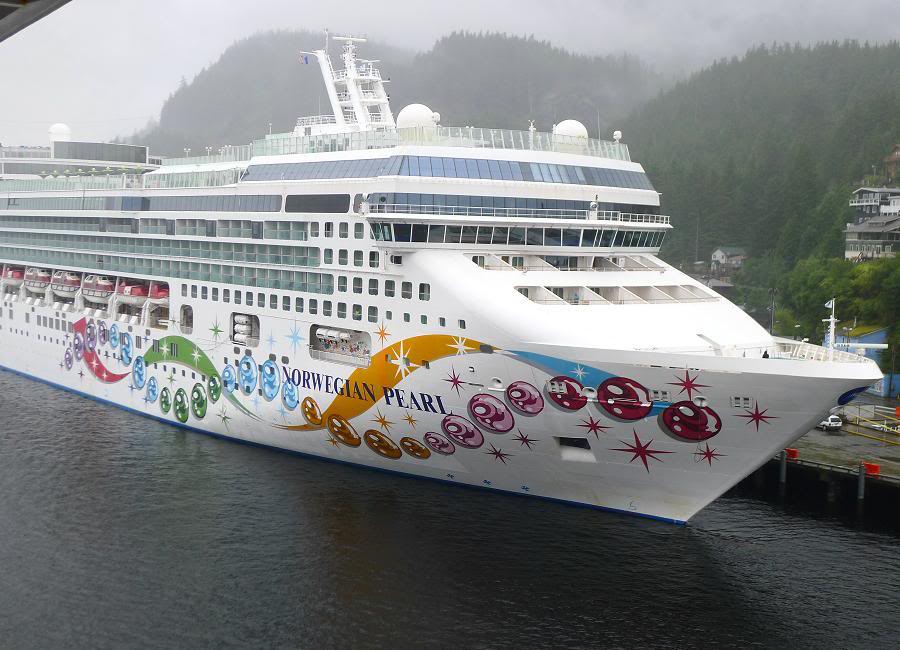 Проснувшись утром, обнаружил, что судно стоит у причала в порту Кетчикана, рядом с огромным лайнером, разукрашенным на манер рисунков моей внучки