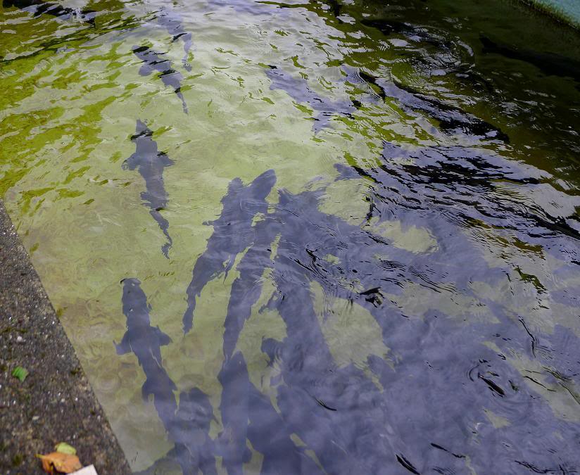 о искусственно молодняка заставляет сомневаться в качестве будущего рыбопродукта. Мне не удалось сделать сколько-нибудь разборчивое фото этих бассейнов, поскольку молодняк в них мечется, как угорелый, пытаясь спастись от массы соседей (глядя на этих рыб, я представил себя на первомайской демонстрации на киевском Крещатике...