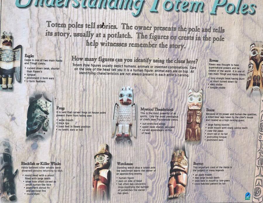 Несколько фотографий без лишних комментариев (я потом покажу табличку, рассказывающую, как следует расшифровывать язык создателей тотемных столбов).